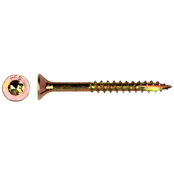 Professionele kwaliteit spaanplaatschroeven 3,5×45 met een verzonken kop en deeldraad. Door de deeldraad kun je twee materialen stevig tegen elkaar aan trekken. De spaanplaatschroeven zijn voorzien van een Torx T15 aandrijving voor een betere grip en een betere kracht overbrenging op de schroef. De Torx schroeven zijn universeel inzetbaar in vele houtsoorten. Ze zijn geel verzinkt en gemaakt van gehard staal. De unieke snijpunt zorgt voor een snelle en krachtige aanzet in het hout. De schroeven zijn daarnaast voorzien van freesribben onder de kop die zorgen voor een betere verzinking in het hout. Deze spaanplaatschroeven zijn voorzien van een ETA en CE keurmerk. Dit betekent dat deze schroeven van hoge kwaliteit zijn en volledig voldoen aan de Europese normen. Spaanplaatschroeven met een verzonken kop worden voornamelijk gebruikt in de houtbouw. Ze zijn perfect voor het gebruik van houten latten, CLS/SLS balken en plaatwerk zoals spaanplaat, MDF, multiplex en OSB. Deze universele schroeven zijn een must have voor elke klusser en zijn geschikt voor bijna elk project.