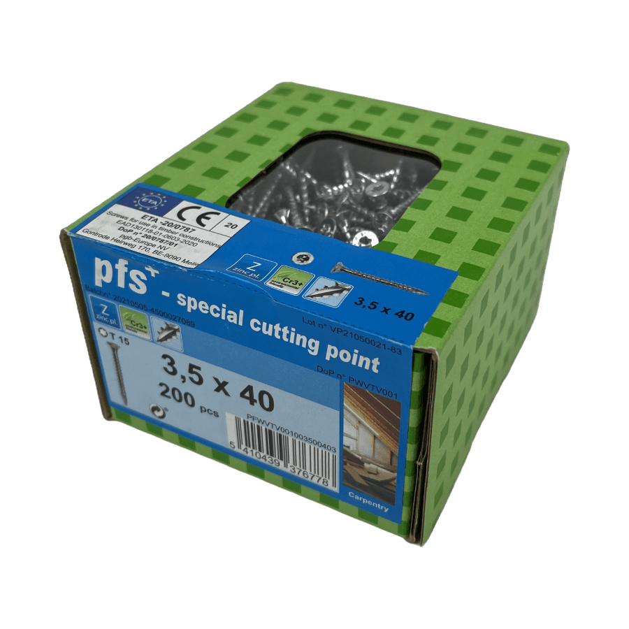 Professionele kwaliteit spaanplaatschroeven 4,5×50 met een verzonken kop en voldraad. De spaanplaatschroeven zijn voorzien van een Torx T20 aandrijving voor een betere grip en een betere kracht overbrenging op de schroef. De Torx schroeven zijn universeel inzetbaar in vele houtsoorten. Ze zijn verzinkt en gehard en gewaxt wat zorgt voor minder inschroef weerstand. De unieke snijpunt zorgt voor een snelle en krachtige aanzet in het hout. De schroeven zijn daarnaast voorzien van freesribben onder de kop die zorgen voor een betere verzinking in het hout. Deze spaanplaatschroeven zijn voorzien van een ETA en CE keurmerk. Dit betekent dat deze schroeven van hoge kwaliteit zijn en volledig voldoen aan de Europese normen. Spaanplaatschroeven met een verzonken kop worden voornamelijk gebruikt in de houtbouw. Ze zijn perfect voor het gebruik van houten latten, CLS/SLS balken en plaatwerk zoals spaanplaat, MDF, multiplex en OSB. Deze universele schroeven zijn een must have voor elke klusser en zijn geschikt voor bijna elk project.