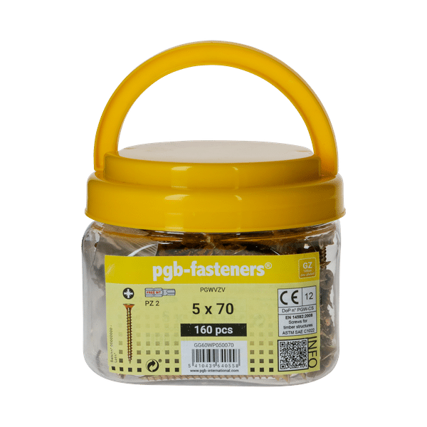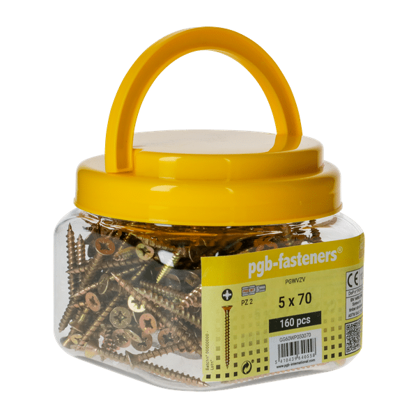 Professionele kwaliteit spaanplaatschroeven 5×60 in een handige emmer. De kruiskop Pozidriv PZ2 schroeven zijn universeel inzetbaar in vele houtsoorten. De spaanplaatschroeven zijn geel verzinkt en gehard en hebben een gedeeltelijke draad (deeldraad). Hierdoor zijn deze schroeven zeer geschikt om twee materialen stevig tegen elkaar aan trekken. Spaanplaatschroeven met een verzonken kop worden voornamelijk gebruikt in de houtbouw. Ze zijn perfect voor het gebruik van houten latten, CLS/SLS balken en plaatwerk zoals spaanplaat, MDF, multiplex en OSB. Deze universele schroeven zijn een must have voor elke klusser en zijn geschikt voor bijna elk project.
