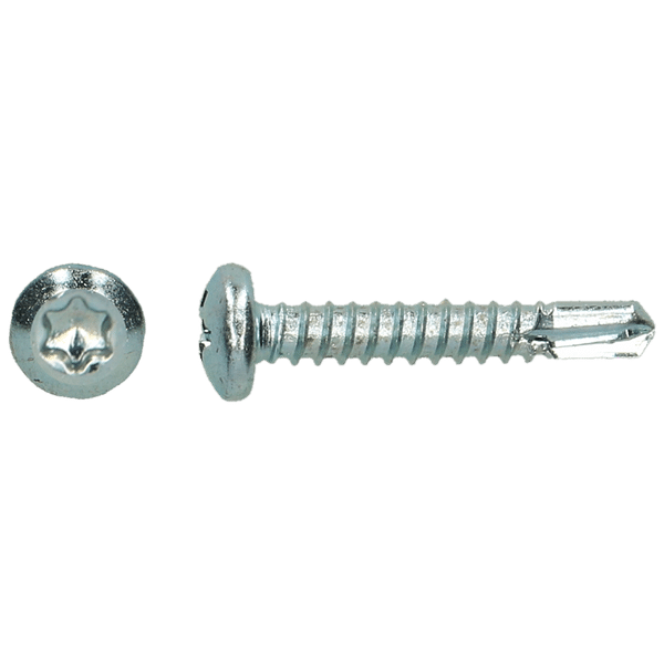 Zelfborende schroef DIN 7504M-T 4,8×22 T25 Zn 200 stuks. Zelfborende schroeven zijn zelftappers met een boorpunt. Zelfborende schroeven staan ook wel bekend als plaatschroeven of parkers. De schroeven zetten zichzelf vastzet in (dun) metaal. Een zelfborende schroef heeft een schroefdraad wat helemaal doorloopt tot aan de kop. Het grote voordeel ten opzichte van de standaard zelftapper is dat voorboren niet meer nodig is.