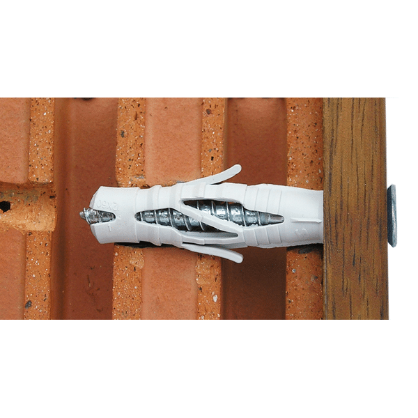 – Bij het indraaien van de schroef zet de plug uit en zorgt voor een ideale verankering in volle en geperforeerde bouwmaterialen.