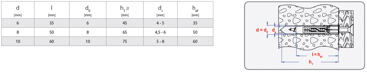 – Unieke geometrie maakt het mogelijk om de plug te gebruiken in elk bouwmateriaal. De kraag verhindert dat de plug in het boorgat wordt geduwd.